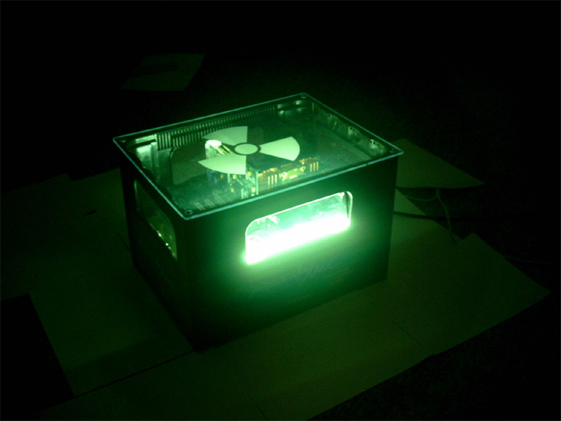 Hier könnt ihr 3 Photos bei völliger Dunkelheit bestaunen, links noch mit zugeschalteter roter Lampe, in der Mitte und Rechts nur mit der grünen Kathode. Wir waren selber überrascht, wie gut das ganze im Dunklen aussieht, vor allem nicht in einem Bierkasten. Umso erstaunter waren wir als wir plötzlich eine Nachricht von der Stern Redaktion bekamen, die unseren Bierkastenserver für einen Artikel über Casemodding photographieren lassen wollte. Zuerst hielten wir das ganze für einen Scherz, als dann aber ein Phototermin feststand und wir alles per E-Mail besprochen hatten, konnten wir sicher sein das es kein Scherz war Bild links zeigt den Profi- Photgraphen vom Stern mitsamt Assistentin und einer Photo- Ausrüstung die sich jeder Hobby- Photograph wünschen würde. Die Ausrüstung hatte einen ungefähren Wert eins gehobenen Mittelklasse-Wagens. Das rechte Bild zeigt ein Motiv, wie es ungefähr später im Stern abgebildet werden wird. Ihr könnt also gespannt sein........ Wichtig! Diese von uns erstellten Photos dürfen nicht ohne unser Zustimmung verwendet werden. Wenn Ihr die Bilder auf eurer Seite veröffentlichen möchtet, lest bitte zuerst die FAQs. |