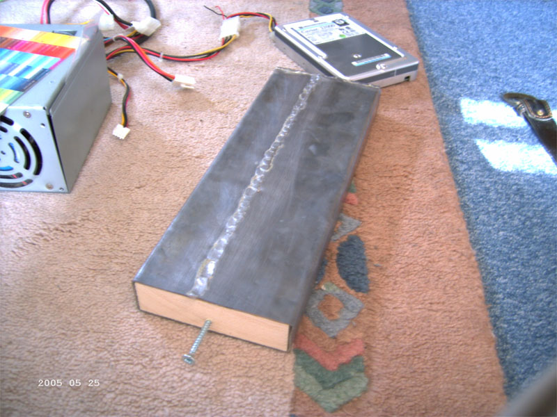 Die Bitumenbox hat unter den Silent Fans ja schon fast Kult Status erreicht, sie ist aus leicht zu beschaffenden Materialien herzustellen und bietet für das Geld eine der besten bislang "erhältlichen" Dämmlösungen ohne dabei den Kosten/Nutzen Faktor zu ignorieren und ohne ein verfrühtes Ableben der HDD herbeizurufen, durch erhöhte Temp z.b. Diese Konstruktion geht in Sachen Material, Zeitaufwand, Schwierigkeit und Konzept vollkommen andere Wege. Ich habe versucht meine Vorgehensweise anhand von Dokumentation mit Text und Bild für jeden verständlich zu machen, vielleicht möchte das auch jemand nachbauen. Die Herstellung ist relativ simpel, schwieriger dürfte schon eher die Beschaffung des Materials sein. Ich hatte zum Glück noch eine Rolle gewalztes Blei hier herumliegen, Reste die von meinem Gehäuse-Dämm-Konzept übrig geblieben ist. Ich habe mir sagen lassen das diese Bleirollen wohl noch im Dachbau manchmal noch verwendet werden um etwa Dachpfannen-Fugen abzudichten oder es wird beim Karminbau verwendet. Ich denke deshalb mal, dass man in einem guten Baumarkt an sowas rankommt. Nun aber zum Bau: Man nehme seine HDD und messe exakt die Höhe, Breite und evtl. Tiefe. Mit den Maßen fertigt man sich ein Holmodell an das von den Ausmaßen her exakt denen der HDD gleicht. Er kann ruhig auch länger sein als die HDD. (Tipp: Man sollte eine Schraube reinbohren um den Klotz später einfach rausziehen zu können) Um diesen Holzklotz beginnt man nun das Blei zu formen, es lässt sich so leicht biegen wie ein Stück Pappe, bleibt aber in Form wenn man es loslässt, so wie ein Stück Draht. Es empfiehlt sich hierbei einen Hammer zu benutzen um grade Kanten zu schlagen (ist für die spätere Passform sehr wichtig!) Hat man es nun vollkommen vom Boden beginnend ummantelt kann das überflüssige Ende abgeschnitten werden. Das Schneiden ist ähnlich wie beim Bitumen, man ritzt das Metall 2-3 mal tief mit einem Cuttermesser an und kann den Rest einfach entlang dieser Kerbe abreißen. Das eine Ende des "Kastens" faltet man ein und verlötet ebenfalls. (Wie ihr das am besten macht bleibt euch überlassen, mit etwas probieren bekommt man es am besten so hin, dass in den Kasten wenig hereinragt und sich so unnötige Luftpolster befinden) Der oben auf dem Deckel noch vorhandene Schnitt kann mit einfachen Mitteln zusammengelötet werden. Hier von oben und von vorn Wichtig ist hierbei nur, dass es absolut dicht ist damit später kein Schall mehr austrit. man darf also oben reichlich auftragen, am besten man lässt den Holzwürfel auch als Unterlage drin, dann tropft auch nichts ins Innere. Das Gleiche geschieht mit der schon zusammengefalteten Seite. Alles schön luftdicht zuschmieren. (Ich denke das es alternativ auch mit Silikonkleber oder ähnlichem geht wer nicht unbedingt Löten will, da auf der Oberseite eigentlich nur ein Teil der Wärme abgegeben wird und der Durchmesser der Kerbe nur gering ist , sehe ich da keine Temperaturnachteile). Hier seht ihr den Holzkasten mit Blei und den leeren Kasten