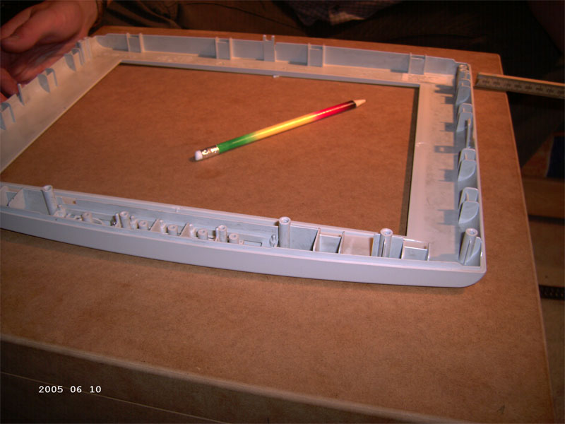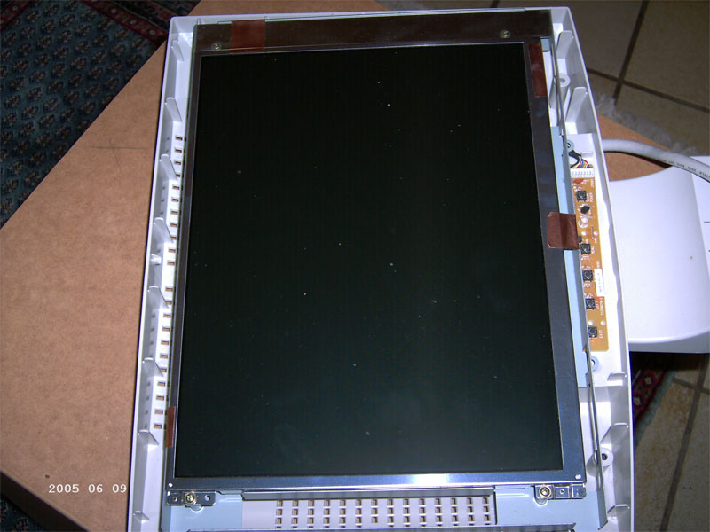 Damit das Ganze noch etwas interessanter wird und sich von der breiten Masse der Cubes absetzt haben wir uns überlegt in eine Seite einen 15" TFT zu verbauen den Jägermeister uns zur Verfügung stellt. Die Hardware aus meinem jetzigen LAN-RECHNER wird von mir gestiftet. Hier seht ihr schon mal ein Bild vom geöffneten TFT, der leider einen ziemlich Breiten Rand um das sichtbare Feld hat. Deshalb müssen wir uns beim Einbau noch etwas einfallen lassen