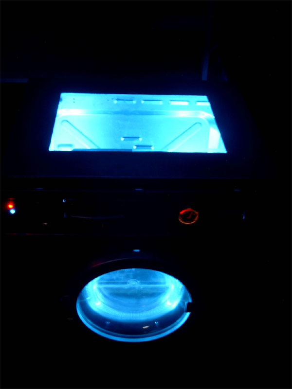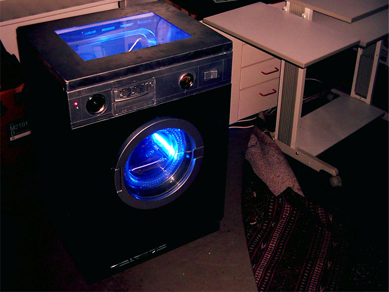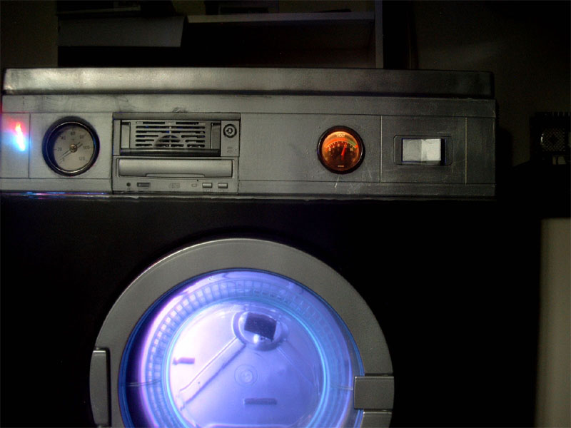 Da wir bemerkt haben, dass der Trockner sehr gut bei euch angekommen ist und wir bislang nur postives Feeback erhalten haben, sahen wir uns dazu veranlasst, einige eurer Vorschläge aufzugreifen und als Verbesserung in unseren Trockner einzubauen. Die grundlegensten Veränderungen bei Version 1.1 sind die konsequente Weiterentwicklung der Elektronik und der Steuerelemente. Die optisch größte Veränderung dürfte aber der Wechsel von der grünen Kathode, die wir schon im Bierkastenserver verbaut hatten hin zu blauen Dual-Kathoden und einer Schwarzlichlampe, sowie die rote Beleuchtung des Voltometers. Desweitern fällt der Einbau von einem Laufwerksschacht ins Auge, der mit einem CD-ROM Laufwerk und unserer gemoddeten HDD bestückt ist. Alle Komponenten sind selbstverständlich in silber lackiert um optisch ins Gesamtbild hineinzupassen. Das Voltometer ist wie oben schon erwähnt, nun beleuchtet und betriebsbereit, es zeigt die momentane Spannung auf der Hauptleitung. Auch fand ein zweites NT den Weg in unseren Trockner, um eine sichere Stromversorgung für alle Komponenten zu gewährleisten. Für evtl. anfallende Reperaturen auf einer Lan haben wir ein Staufach für Kleinteile wie etwa Schrauben, LEDs etc. installiert. Diese Modifikationen haben einige Zeit in Anspruch genommen und dementsprechend ist auch die Bewertung auf einigen LANs ausgefallen. Wir haben es zwar noch nicht geschafft, bei einem Casemod Wettbewerb zu gewinnen, aber die Resonanz ist bislang nur postiv ausgefallen, ausserdem war der Trockner dort ein echter Blickfang. Doch die Akte-Lan-Gigant ist noch nicht geschlossen, wir arbeiten weiter fieberhaft an einer Version 1.2 in der die Elektrik weiter perfektioniert wird und aus transporttechnischen Gründen wäre es angebracht Rollen unter dem Trockner zu befestigen. Für das Innenleben haben wir noch weitere kreative Ideen die wir aber an dieser Stelle noch nicht verraten möchten, ihr könnt uns auch selbst noch ein paar Verbesserungsvorschläge zukommen lassen, schliesslich soll der Casemod ja auch euch gefallen Also, ihr dürft gespannt sein, denn bis zur Fertigstellung von Version 1.2 wird es noch einige Zeit in Anspruch nehmen. |