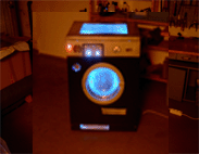 Der Trockner wurde, bevor überhaupt angefangen werden konnte, in seine Einzelteile zerlegt und vollkommen entkernt. Wir verlegten über 25m Kabel durch neue angelegte Kabelschächte und fixierten diese fachgerecht. Desweiteren bauten wir neue LED Beleuchtung vor allem an der Vorderseite ein wie z.B. am Boden des Trockners gut zu sehen ist. Hier gefiel uns das Standardgitter nicht, dieses wurde durch ein bei ATU gekauftes Renngitter erstetzt und mit 2 LEDs bestückt um es optisch etwas hervorzuheben. Alle bereits vorhandenen LEDs wurden durch neue, ultrahelle LEDs ausgetauscht und wir bauten ebenfalls Kippschalter ein um diese bei Bedarf auch auszuschalten Die Lackierung des Trockners stellte sich ebenfalls als Problem dar, denn diese hat stark unter mehrfachen LAN Einsatz gelitten. Es war also eine Neulackierung erforderlich, diesmal Metallic Lack. Um die Kühlung noch weiter zu optimieren fräßten wir ein 80mm grosses Loch unterhalb der Temperaturanzeige ein und setzen einen 80mm grossen Turbolüfter mit 4000U/min dahinter. Als Sicherheitsschutz verwendeten wir wieder das Renngitter. Da sich auf den Lans herausstellte, dass das Kühlsystem noch nicht richtig ausgereift war, war eine komplette Neukonstruktion erforderlich. Dazu fräßten wir das grosse, nicht beleuchtete , mit Gitter versehene Fenster, wodurch die Frischluft nun angesaugt wird, in die Front des Trockners ein. Die Motorleistung reichte mit ihren 2000W Leistung noch nicht ganz aus, deshalb war eine Erhöhung der Leisung unabdingbar. Mit den jetzigen 2500W reicht die Leistung nun aus um das Frischluftsystem zu speisen, dies wird nun durch 2 Alu - Röhren in das Gehäuseinnere geleitet.Die Abluftkanäle befinden sich auf der Gehäuserückseite.