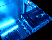 Wir haben uns nun der vorher nur als DUMMY installierten HDD gewidmet und ihr auch eine LED Beleuchtung verpasst.Damit es auf den Photos besser aussieht haben wir die Stom und IDE Kabel entfernt. Im Inneren wurden alle Kabel verkleidet, die Mainboardtechnik ist unverändert geblieben, da ausgereift. Wir sind mit unserer Arbeit mehr als zufrieden, wenn man es mit dem Urversion vergleicht sieht man doch den optischen und technischen Fortschritt. Was vorher von vielen belächelt wurde, entwicklete sich der Trockner als "Eye-Catcher" auf jeder LAN.