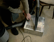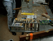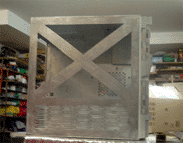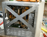 **** Casemod : BLUE LIGHTNING - Der Aufbau**** ****UPDATE VOM 01.03.2004**** So, am Wochenende haben wir wieder etwas weitergearbeitet, aber diesmal nicht ganz so spektakulär, aber das kann es ja nicht immer sein, schließlich müssen auch mal langweilige Arbeiten gemacht werden;-) Hauptarbeiten: - Weitere Anpassung des Towers an die ATX Norm Wie man im folgenden Bild leider nicht so ganz deutlich erkennen kann, war für den weiteren Bau der Schacht im Weg, der sonst für die CD-Laufwerke vorgesehen ist. Da dieser aber noch im anderen Tower intakt ist, kann man auf diesen Käfig sehr gut verzichten. Schließlich würde er auch die Optik stören, denn es wird ein breites Windows in das Seitenteil gebaut, dazu aber später