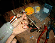 Hier sieht man Veltins, wie er mit einem Schleifgerät die letzen Lackreste vom Tower entfernt. Die aus Plastik bestehenden Frontstücke werden selbstverständlich ebenfalls lackiert, egal ob eine Grundierung nun notwendig ist oder nicht, die Kunststoffstücke müssen auf jedem fall sauber und fettfrei sein, deswegen wurden sie von RiGO gründlich gewaschen, Ich werde sie bevor ich sie zur möglichweise nötigen Grundierung gebe noch einmal mit Alkohol reinigen.