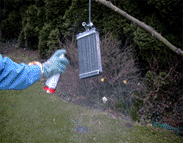 Wie man unschwer erkennen kann, haben wir das Ganze einfach lose an einen Strauch gehängt, da man so ohne Probleme alle Seiten gleichzeitig besprühen kann. Wir hatten Glück, zum Zeitpunkt der Lackierung flogen keine Pollen oder Ähnliches auf den frischen Lack. Hier noch die Bilder vom Radiator und ein Bild vom ganzen Glockenspiel: