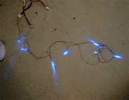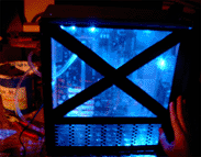 _____________________________________________________ **** UPDATE VOM 24/25ten ***** Beleuchtung, Wakü Testlauf weitere Abdichtung des mittleren Freiraumes. Zwar sind wir jetzt mächtig im Abi Stress, aber da wir uns überlegt haben, dass um 19uhr sowieso keiner mehr lernen kann, könnten wir auch eigentlich weiterbauen. Heute ist es sogar noch etwas später geworden als beim letzten Treffen, aber wir haben auch einiges geschafft. Kurz zusammengefasst: - erster wirklicher Wakü Testlauf Wir begannen heute eigentlich damit, womit wir zuletzt aufgehört hatten, nämlich dem Anschliessen der LEDs in einem der Tower. Während ich mit Veltins die LEDs weiter bearbeitete, machte sich Jägermeister schon einmal vorab mit dem Bau von wasserdichten LEDs vertraut. Im Grunde genommen wird über dem Ganzen nur eine dicke Schicht Heißkleber gesetzt und wie ihr sehen könnt, das Ganze funktioniert tatsächlich. Ich hatte es nicht geglaubt, aber die LEDs machen, so verpackt wie sie jetzt sind, einen ganz guten Eindruck. Hier einn Bild vom Test in einem Waschbecken.