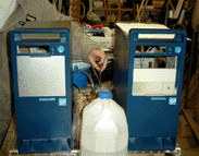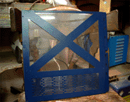 Nachdem wir dann Dieses vollbracht hatten, war die Wakü dran. Schon zu Beginn des Projektes hatten wir die Förderleistung der Pumpe schon kurz testen können, heute allerdings sollte die Wakü zum ersten mal in richtiger Umgebung zum Einsatz kommen und auf Dichtigkeit überprüft werden. Nachdem wir die Kabel und Anschlüsse und das ganz normale Wakü Zeugs auf dem CPU Sokel montiert hatten, fuhren wir zum nächstgelegenen Baumarkt, um einen Kanister mit destiliertem Wasser zu kaufen. Bei dieser Gelegenheit kauften wir auch gleich noch die dringend benötigte dünne Plexiglasplatte für die Front und Rückseite.